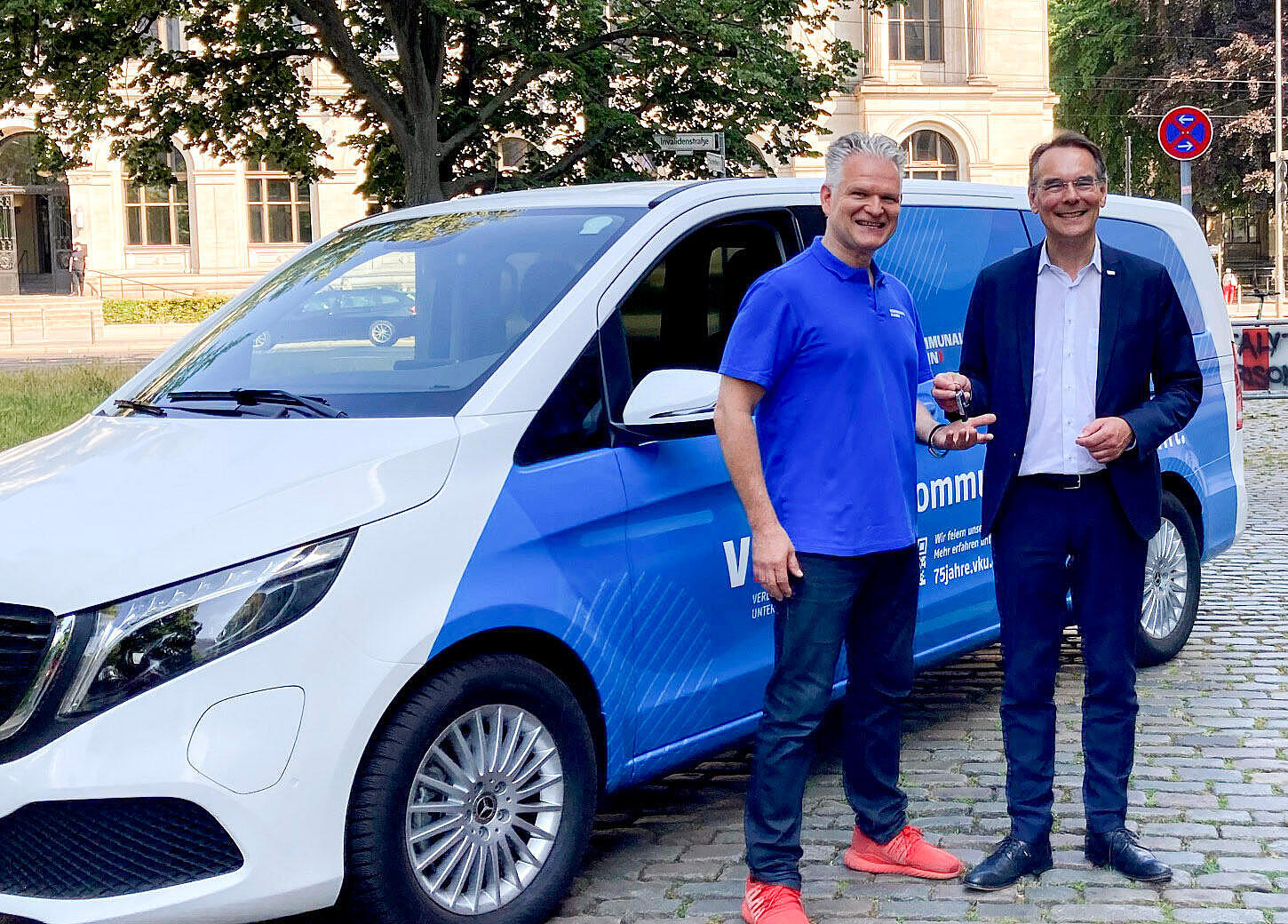 Der Verband kommunaler Unternehmen (VKU) wird 75 Jahre alt. Zu diesem Anlass hat der VKU heute offiziell seine Tour de Daseinsvorsorge in Berlin gestartet. VKU-Chef Ingbert Liebing übergab den Schlüssel. In den kommenden Monaten werden VKU-Mitarbeiterinnen und Mitarbeiter mit einem Elektro-Bus Mitgliedsunternehmen in ganz Deutschland besuchen.