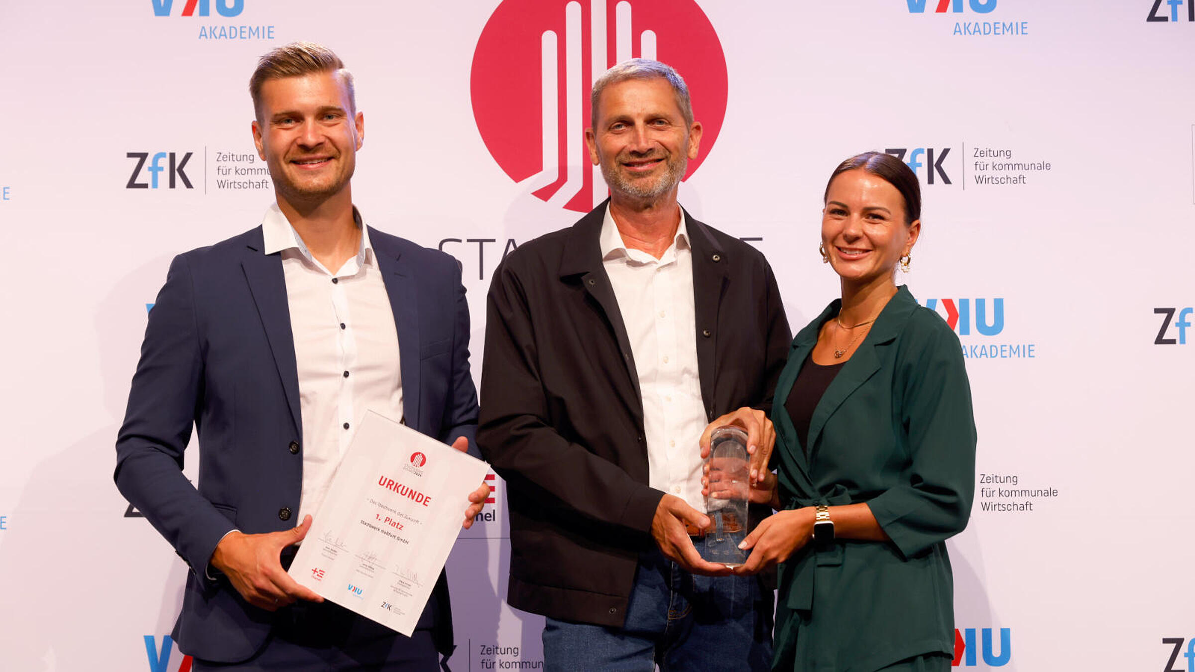 Die Stadtwerk Haßfurt GmbH, die SWM Services GmbH (München) und die EWR AG (Worms) sind die Gewinner des STADTWERKE AWARD 2024. Mit Pilot- und Forschungsprojekten in den Bereichen Energiemanagement, Digitalisierung und Nachhaltigkeit setzten sich die Sieger gegen ein starkes Bewerberfeld durch und wurden beim VKU-Stadtwerkekongress am 4. September in Hannover ausgezeichnet. Sven Becker, Sprecher der Geschäftsführung der Trianel GmbH, und Ingbert Liebing, Hauptgeschäftsführer des Verbandes kommunaler Unternehmen (VKU) lobten die Ideenvielfalt und die vorbildliche Umsetzung der Projekte. Nach einer Vorauswahl durch eine Expertenjury hatte ein Votum der Leserschaft der Zeitung für kommunale Wirtschaft (ZfK) über die Endplatzierungen der Finalisten entschieden.