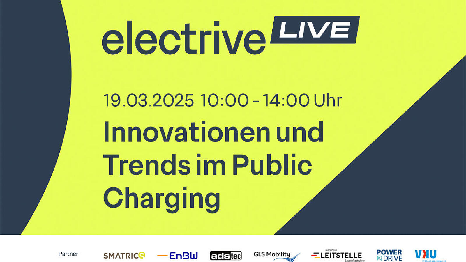 Wir möchten Sie auf die nächste Veranstaltung von electrive LIVE aufmerksam machen: Die Online-Konferenz zum Thema „Innovationen und Trends im Public Charging“ findet am 19. März 2025 von 10:00 bis 14:00 Uhr statt.