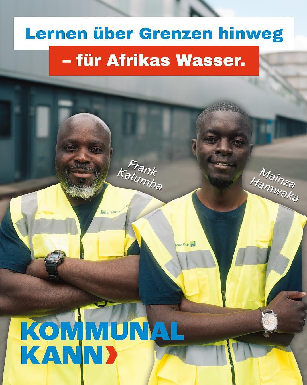 Ein paar Wochen vorher, Anfang Juli. Gelsenkirchen glüht – 38 Grad, fast wie in Afrika. Passend, denn zwei Ingenieure aus Sambia sind zu Gast bei Gelsenwasser: Frank Kalumba und Mainza Hamwaka arbeiten für den sambischen Wasserversorger Lukanga Water, der mit bis zu 88 % Wasserverlust im Leitungsnetz kämpft.