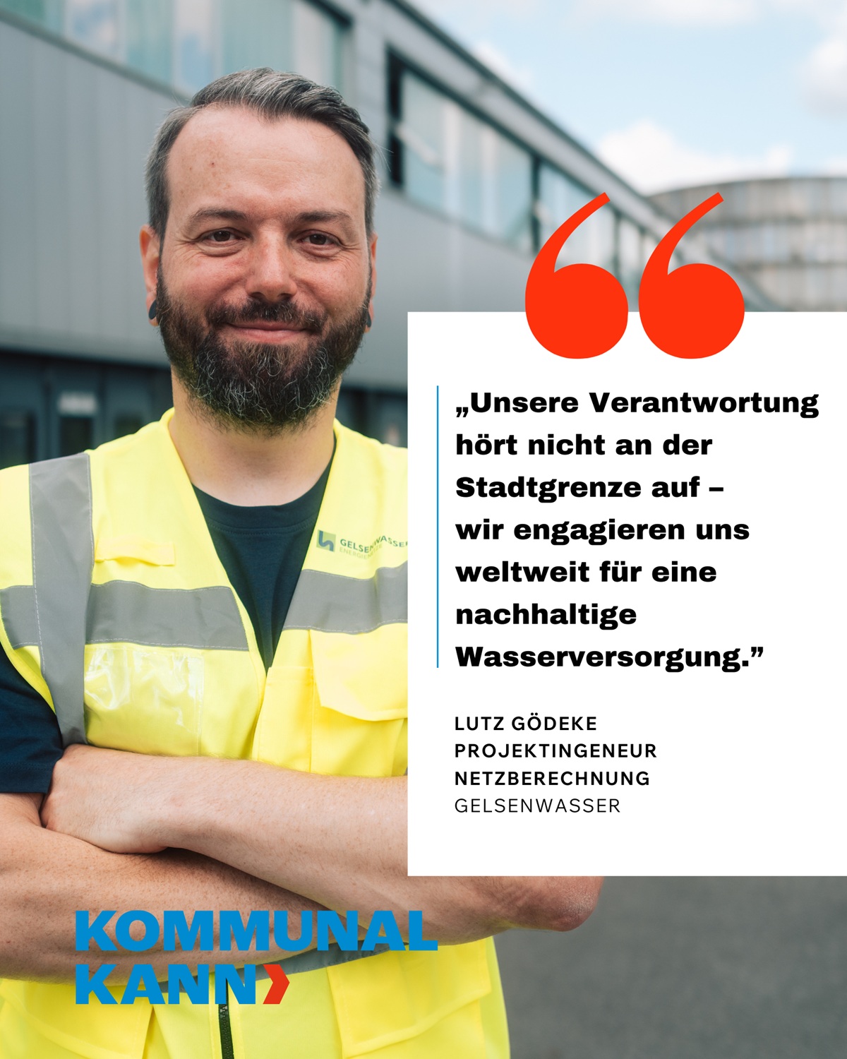 „Ich hätte mich tatsächlich bei Gelsenwasser beworben, wenn ich gewusst hätte, dass es so was gibt“, sagt Lutz Gödeke, Projektingenieur Netzberechnung. Er war bereits vor Ort in Sambia – eine Erfahrung, die ihn nachhaltig beeindruckt (zum YT-Video). Sein Satz bleibt hängen und zeigt, was kommunale Unternehmen Fachkräften heute bieten können: Sinn, Perspektive und internationale Erfahrungen.