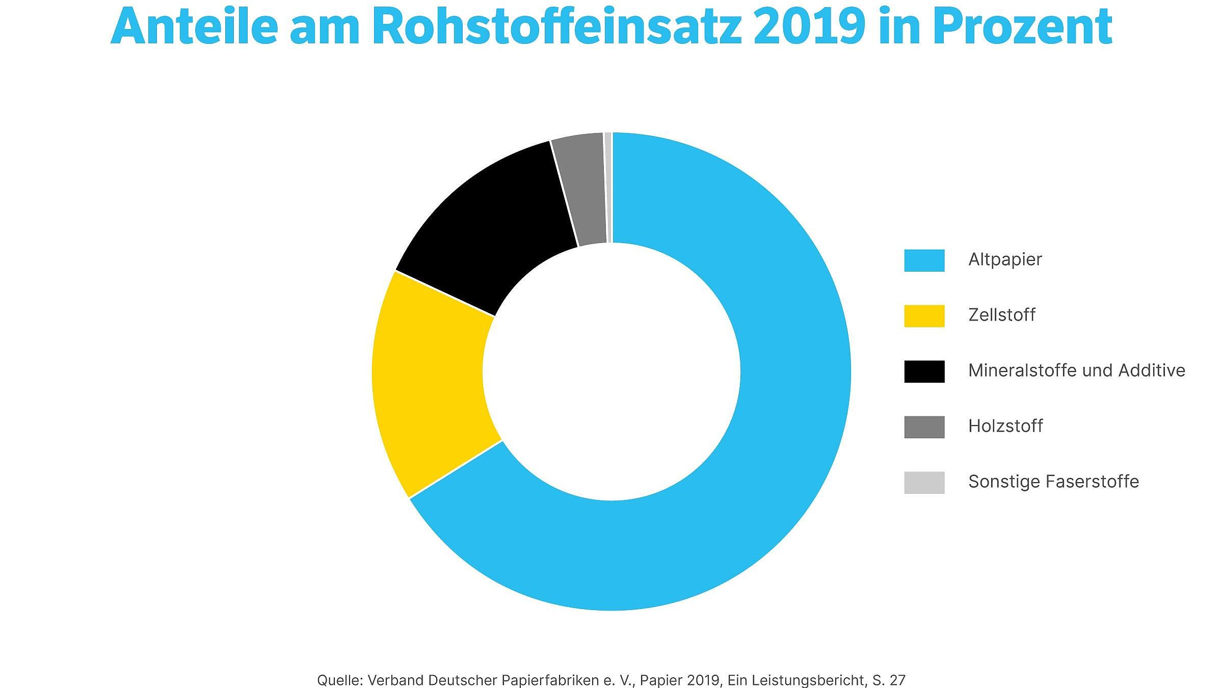 Altpapier ist seit vielen Jahren in Bezug auf die Menge der wichtigste Rohstoff der deutschen Papierindustrie. Der Anteil von Altpapier lag 2019 laut Angaben des Verbandes Deutscher Papierfabriken e. V. bei 66,2 Prozent. Zellstoff und sonstige Faserstoffe hatten einen Anteil von 16,3 Prozent und Holz einen Anteil von nur 3,7 Prozent.