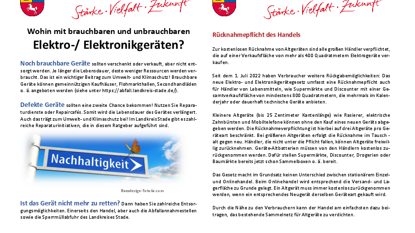 Anlässlich des E-Waste Days hat der Landkreis Stade einen Elektroratgeber erstellt, der demnächst veröffentlicht wird.
