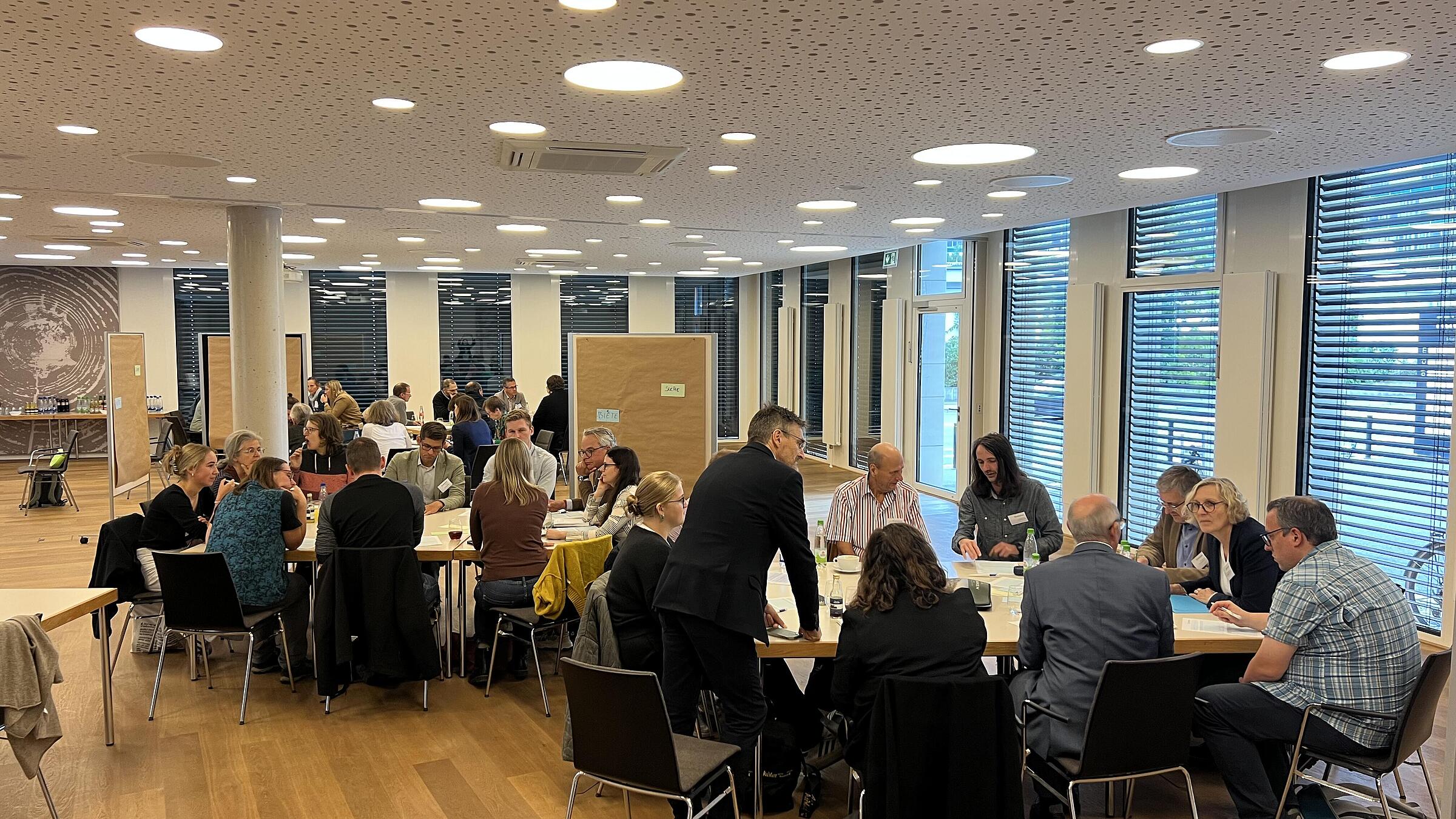 Ganz im Sinne der Projektphilosophie kamen die Teilnehmenden bei der Tagung viel zu Wort. Es wurden Erfahrungen mit Klimaanpassung in der Region geteilt. Besonders das schnelle Fortschreiten des Klimawandels in der Region wurde betont und der große Handlungswille im Raum wurde deutlich. Expert:innen für Grundwasserschutz, Agroforstsysteme, Wasserversorgung und Bildung für Nachhaltige Entwicklung sowie Fachwissen im Umweltschutz, Energiewirtschaft und Landwirtschaft boten an, ihre Netzwerke und ihre Expertise mit anderen zu teilen. Viele Menschen konnten Einblick in laufende Vorhaben geben. Auch Wünsche für die weitere Arbeit wurden laut: während manche konkrete Finanzierungsmöglichkeiten für Anschlussprojekte suchten, wünschten sich andere mehr Offenheit und Mut zum Perspektivwechsel in Debatten vor Ort.