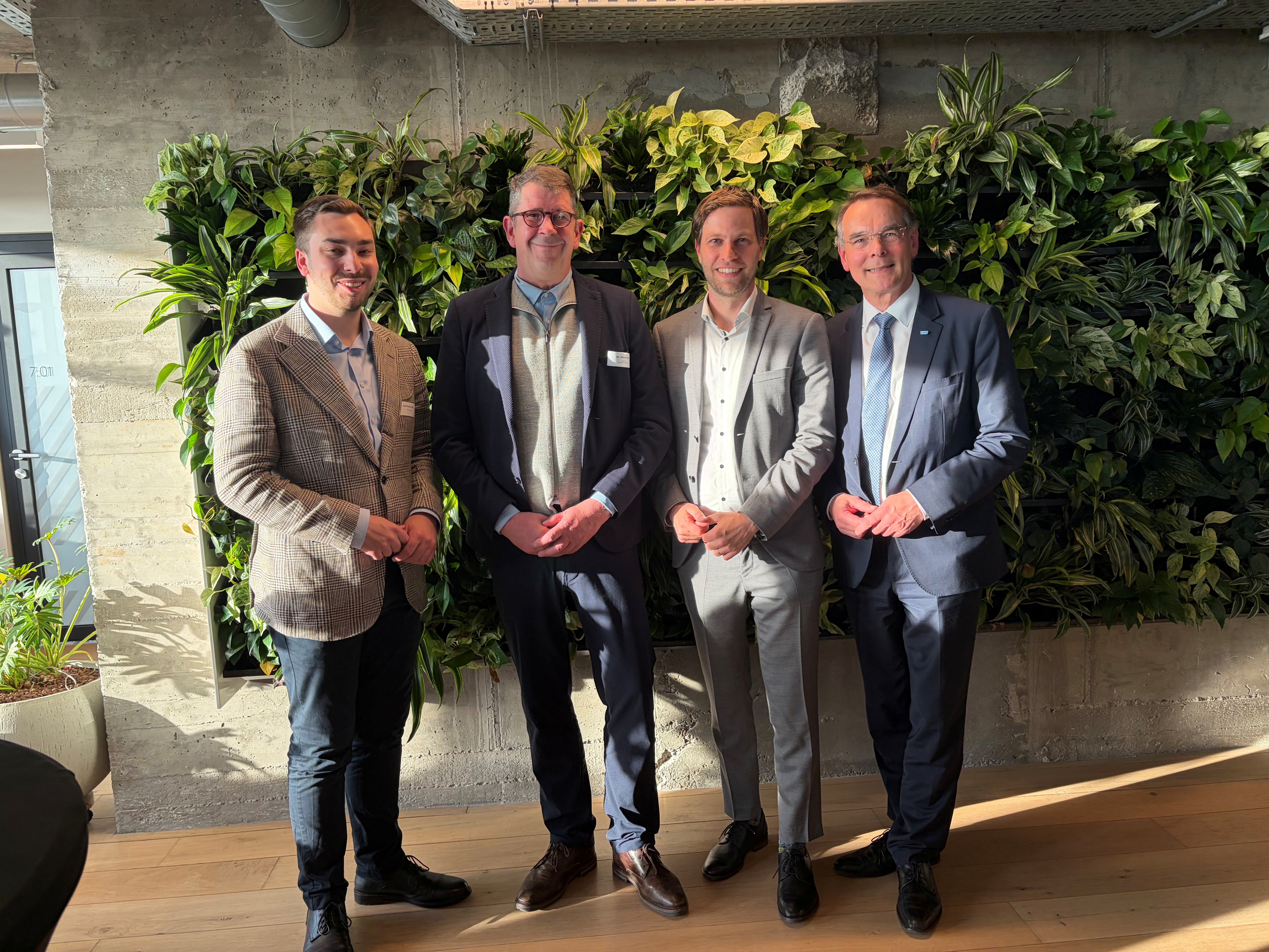 v. l.: Kurt Fischer, Generalsekretär der SPD Brandenburg, Dr. Oliver Ruch, Julian Büche, Geschäftsführer der VKU-Landesgruppe Berlin-Brandenburg und Ingbert Liebing