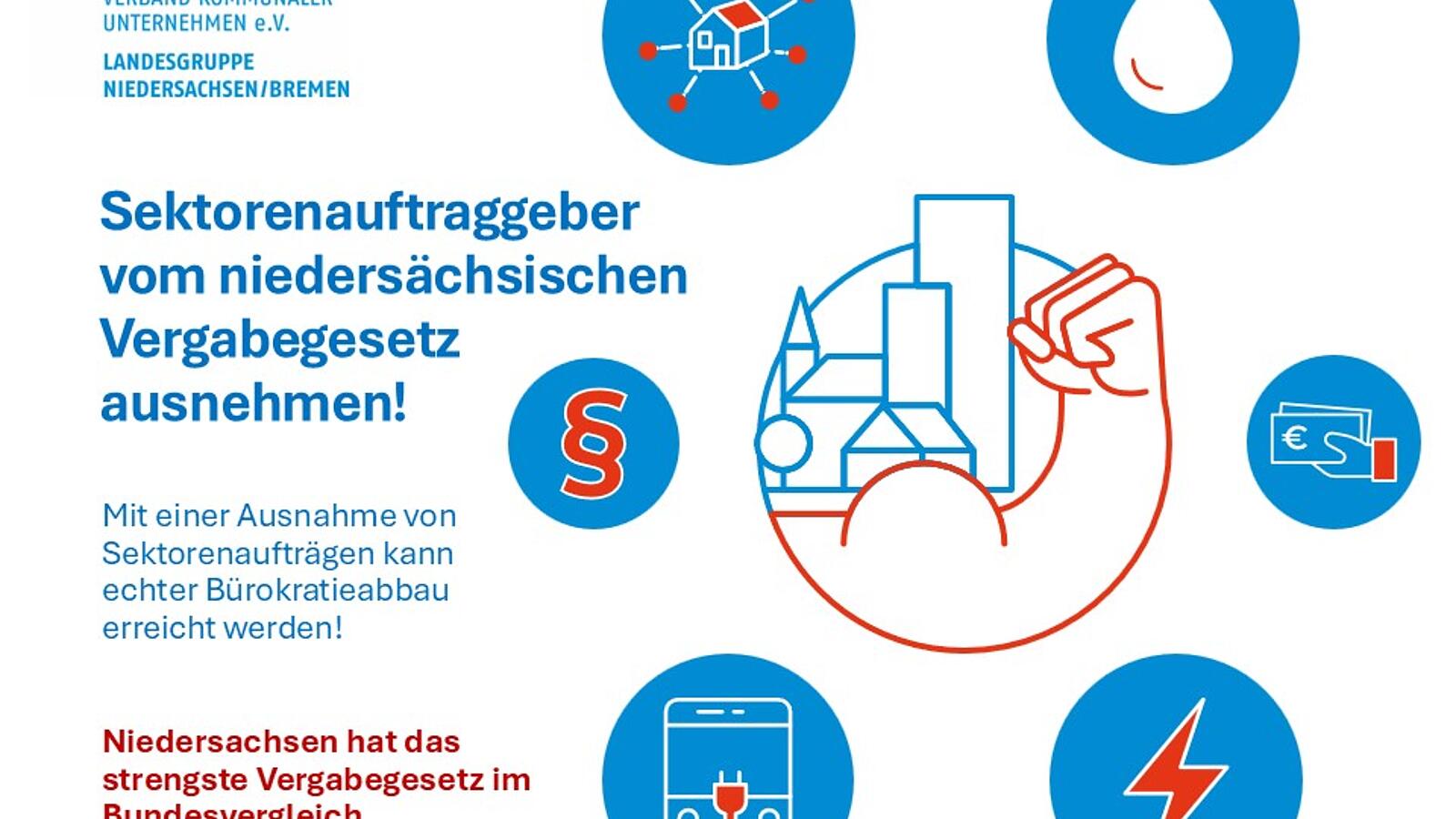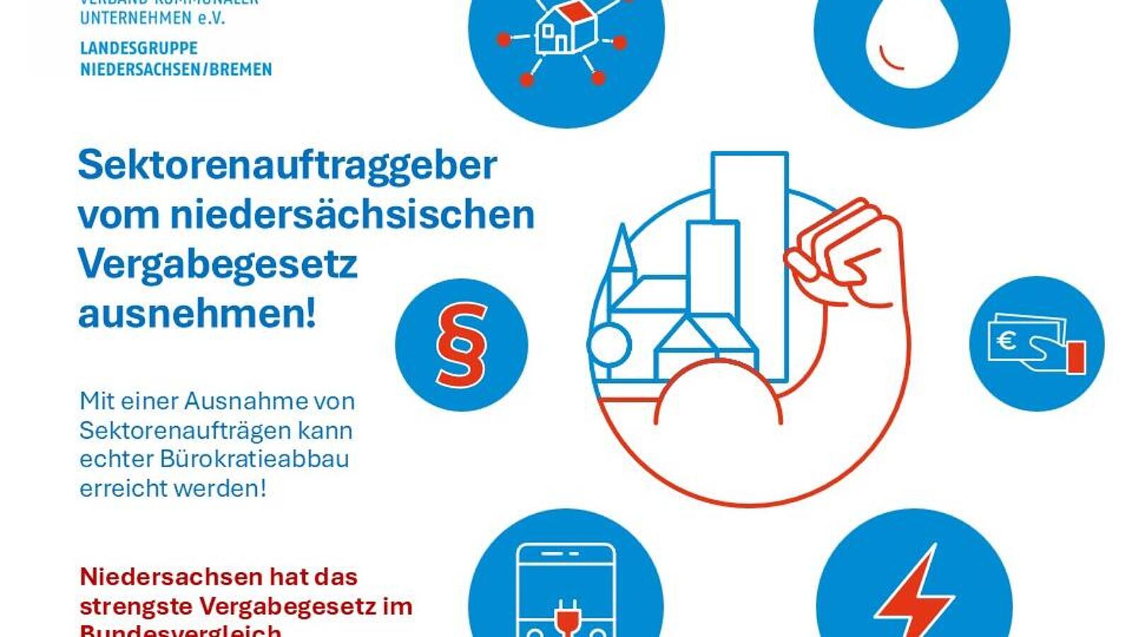 Der VKU setzt sich dafür ein, Sektorenauftraggeber vollständig vom Niedersächsischen Vergabegesetz auszunehmen – analog zu vielen anderen Bundesländern. Damit würden echte Entlastungen entstehen, ohne die grundlegenden Prinzipien von Transparenz, Wirtschaftlichkeit oder sozialer Verantwortung auszuhöhlen.