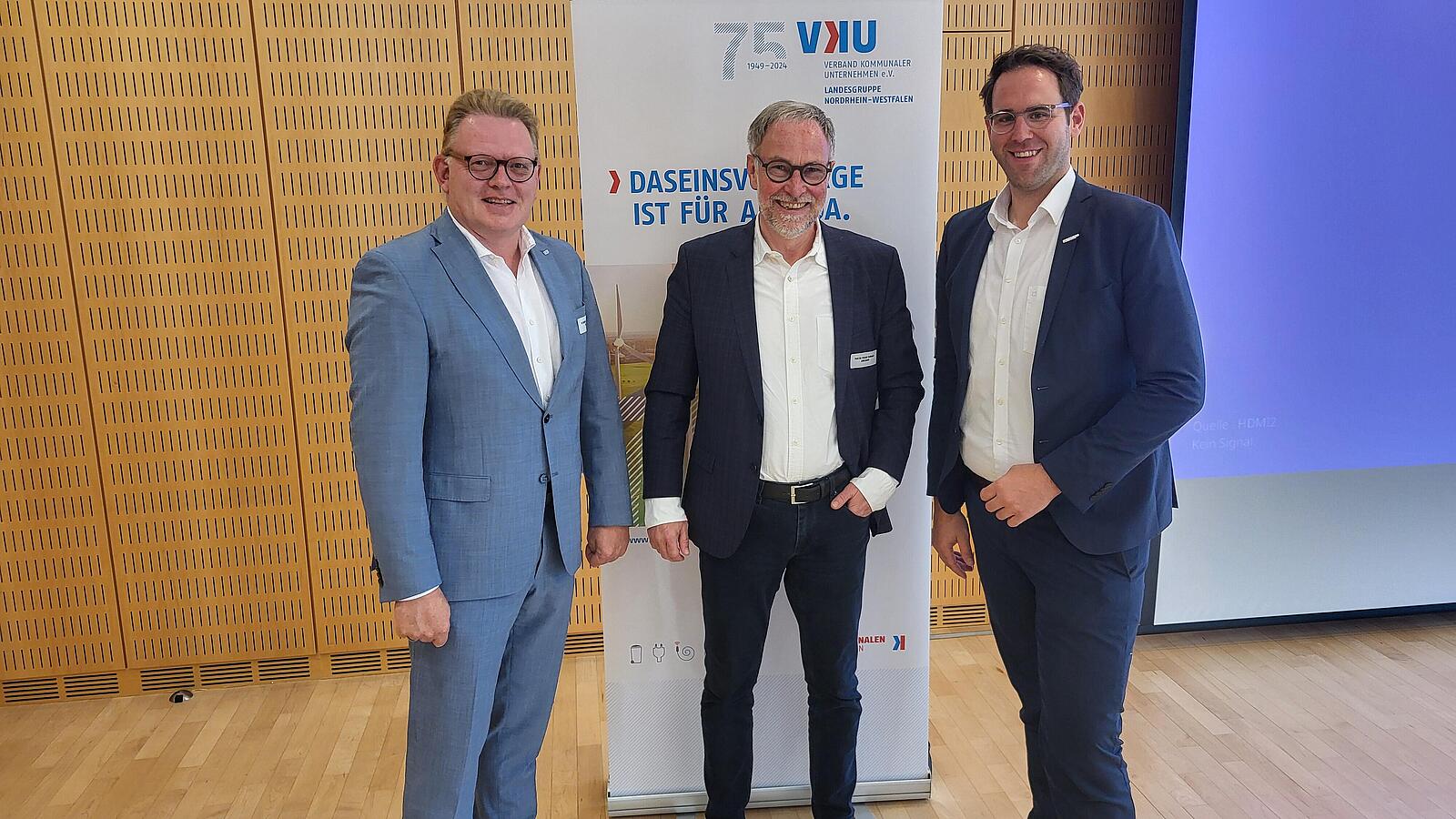 Aber das war nur ein Programmpunkt unter vielen am 04. September. Da fand kombiniert die 29. Sitzung unseres Ausschuss Wasser/ Abwasser NRW sowie die jährliche VKU-NRW-Wasser-Tagung 2025 statt. Zentrales Thema: Die Auswirkungen des Klimawandels und von extremen Wetterereignissen auf die Wasserversorgung. Und die hohen Investitionen, die zur Erhaltung der Wasserinfrastruktur nötig sind. Ein Gutachten beziffert diesen Betrag auf 800 Milliarden Euro bis 2045! Wasser ist das Elixier des Lebens. Die Versorgung mit Trinkwasser ist ein zentraler Bereich der Daseinsvorsorge. Die kommunalen Unternehmen sorgen dafür, dass alle Bürgerinnen und Bürger mit Wasser versorgt werden, jetzt und in Zukunft. Um diese Investitionen zu stemmen, braucht es allerdings Unterstützung aus der Politik.
