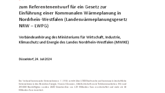 Stellungnahme des VKU NRW zum Referentenentwurf für ein Gesetz zur Einführung einer Kommunalen Wärmeplanung in Nordrhein-Westfalen (Landeswärmeplanungsgesetz NRW – LWPG)