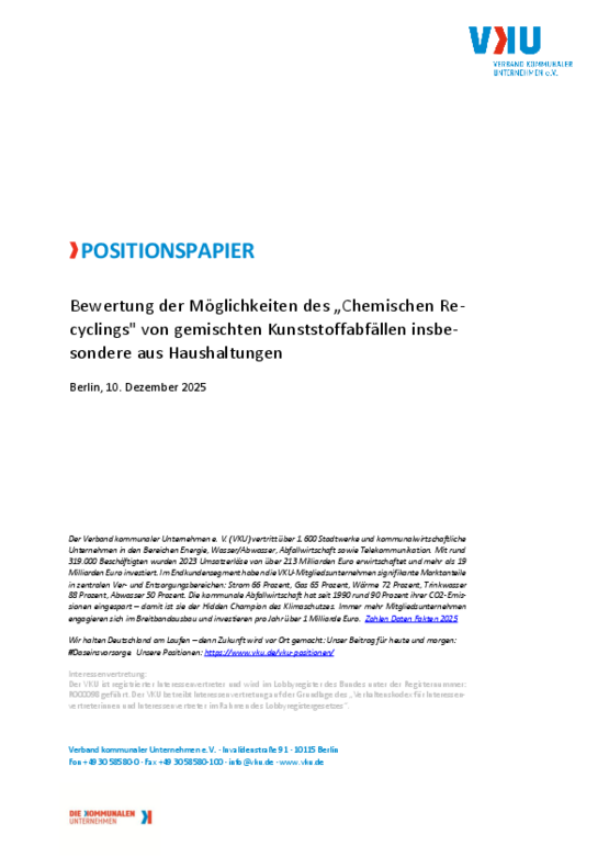 Insbesondere im Rahmen der Fortentwicklung der Abfall- und Kreislaufwirtschaft, der Schließung der Kohlekraftwerke und somit Wegfall dieser Abfallmitverbrennungskapazitäten, aufgrund steigender gesetzlich geforderter Recyclingquoten, der begrenzten Möglichkeiten mechanischer Sortier- und Recyclingverfahren, dem hohen Aufkommen an gemischten Kunststoffabfällen, dem Rohstoffbedarf der chemischen Industrie sowie der Forderungen nach der Reduzierung der thermischen Abfallbehandlung wird in den vergangenen Jahren das sog. „chemische Recycling“ von gemischten Kunststoffabfällen nun immer intensiver propagiert, erforscht und entwickelt. Im Jahr 2020 erkannte das Bundesumweltministerium zwar zumindest die Möglichkeit einer interessanten Entwicklung im Hinblick auf die Verwertung bislang energetisch verwerteter Kunststoffabfälle durch ein „ökologisch und ökonomisch sinnvolles chemisches Recycling“, jedoch nicht in Bezug auf Verpackungsabfälle. Kurz darauf hatte die damalige Koalition dann im Koalitionsvertrag 2021 vereinbart, auch das chemische Recycling als zulässige Option aufzunehmen, dies ist jedoch nicht geschehen.