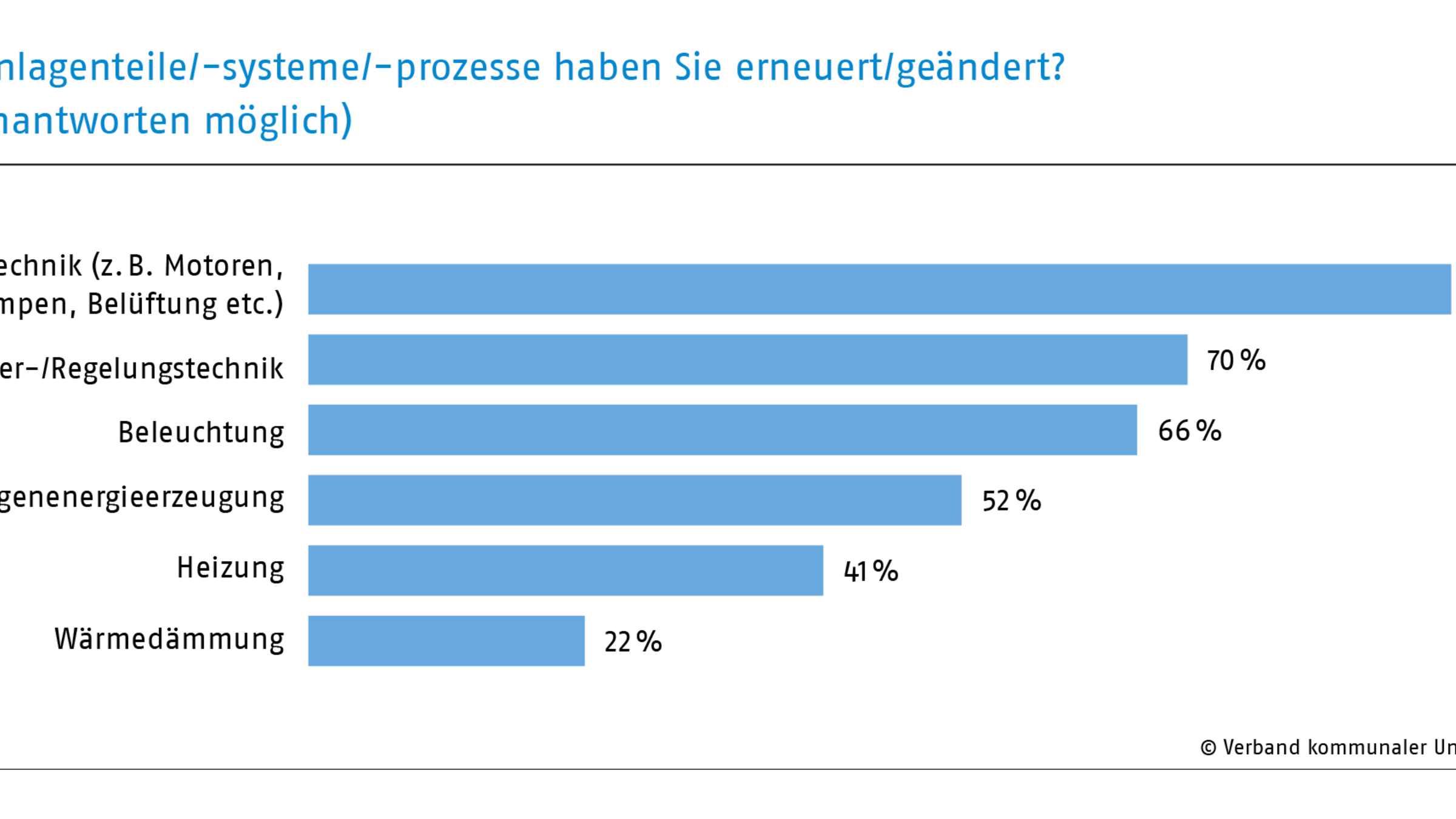 Energie ist eine zentrale Größe im wasserwirtschaftlichen Betrieb. Energieeffizienz ist daher Aufgabe und gelebte Praxis in der kommunalen Wasserwirtschaft. Klimaschutz und Klimaanpassung stellen neue und erhebliche Anforderungen an die Trinkwasserversorgung und Abwasserentsorgung.